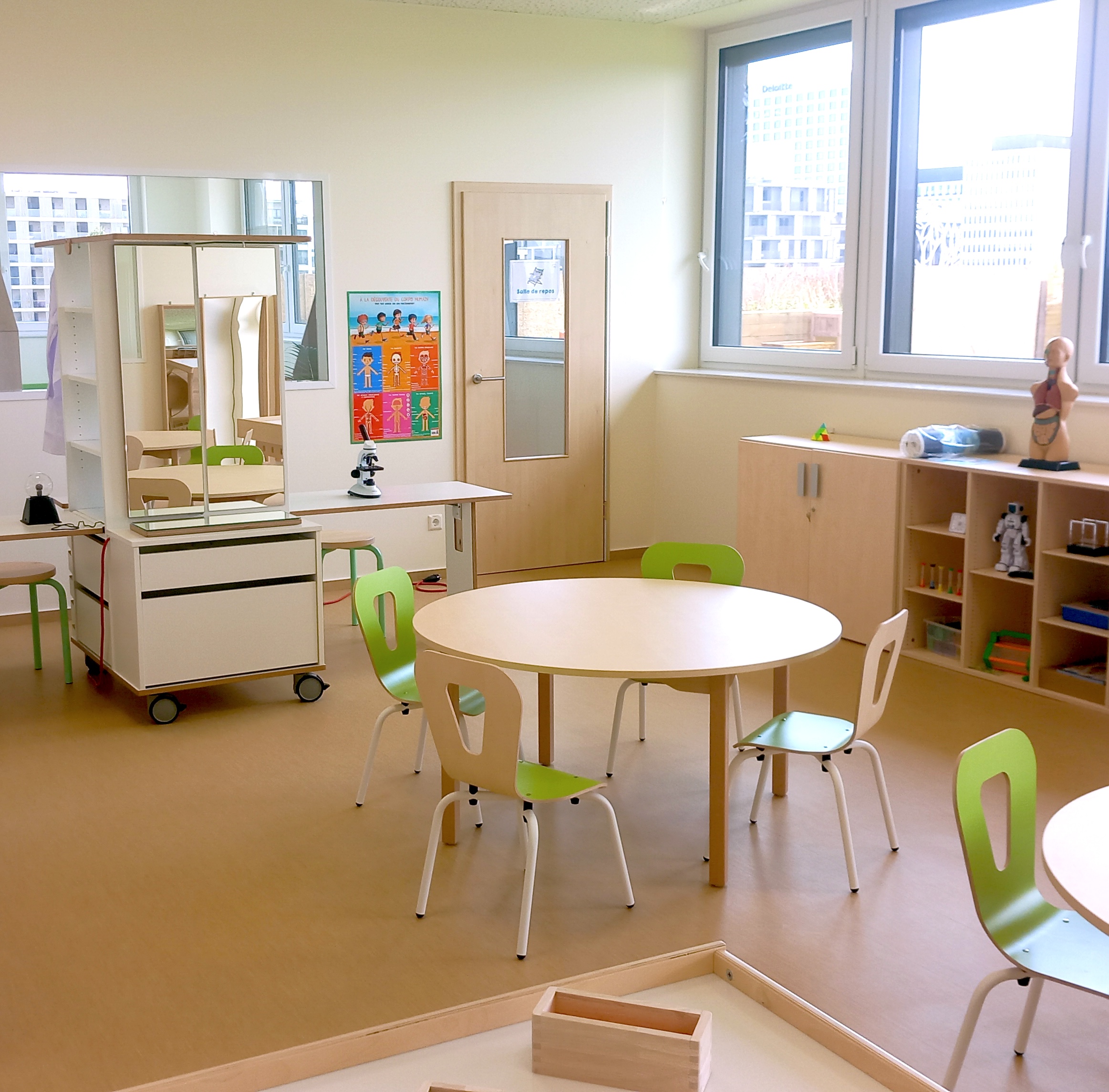 🔬 Salle scientifique pour éveiller la curiosité et l’esprit d’exploration.